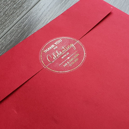 Personalised "Thank You for Celebrating with Us" Foil Stickers