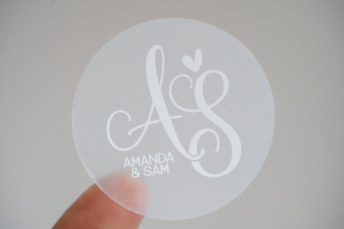 "These White Wedding Clear Monogram Stickers were the perfect addition to our wedding! The clear background gave them a sleek, modern look, and the monogram design added a personal touch to every favor and invitation. The quality is amazing, and they were incredibly easy to apply. They added that little extra elegance and sophistication to our special day. I highly recommend these to anyone looking for a unique and beautiful wedding detail!