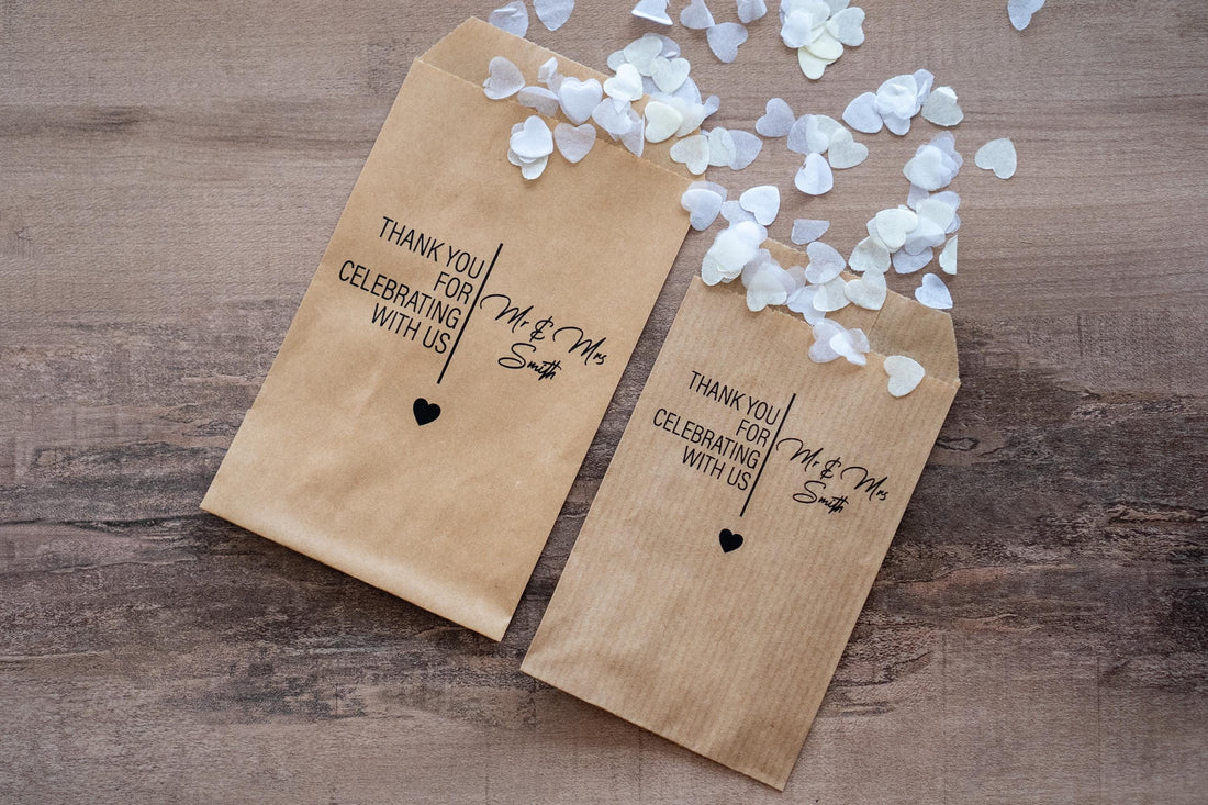 "These personalized foil stickers are absolutely stunning! The quality of the material is top-notch, and the design is so elegant. The 'Thank You for Celebrating with Us' message adds a personal touch that makes our special event even more memorable. The foil finish gives the stickers a classy shine that stood out perfectly on our favor bags. I highly recommend these stickers for anyone looking to add a beautiful, personalized touch to their celebrations!"