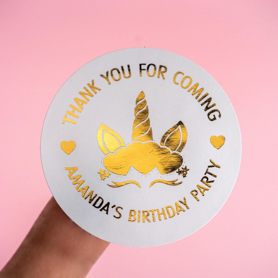Personalised Unicorn Birthday Party Foil Stickers/Custom Party Labels/Birthday Party Favours/Birthday Party Decoration/Party Bag Stickers