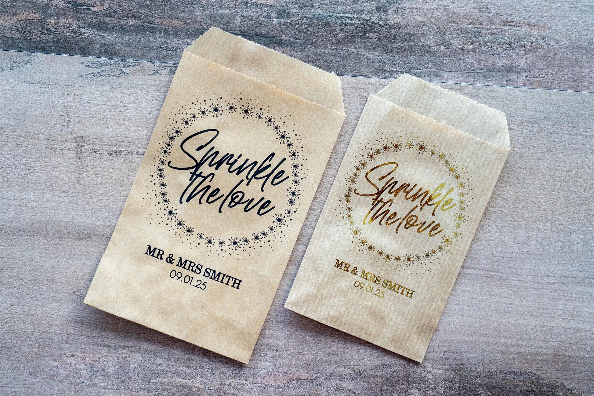 Make your wedding truly unforgettable with our Personalised Wedding Confetti Bags! These beautiful eco-friendly pouches add a special touch to your celebration. Choose from two sizes and customize with your own message and elegant metallic foil. Fill them with traditional or biodegradable confetti for a stylish and eco-conscious option. Your guests will cherish these unique keepsakes and remember your special day forever.