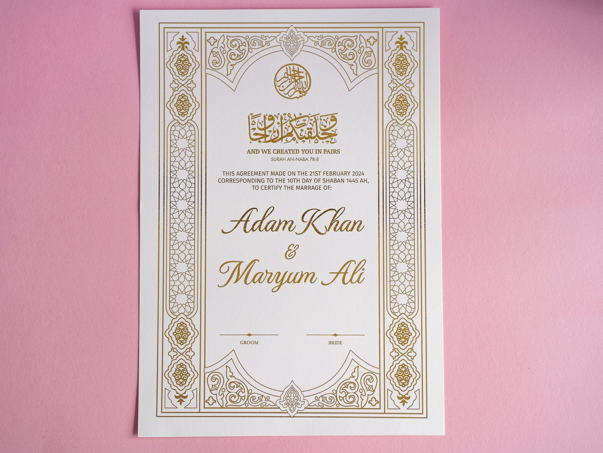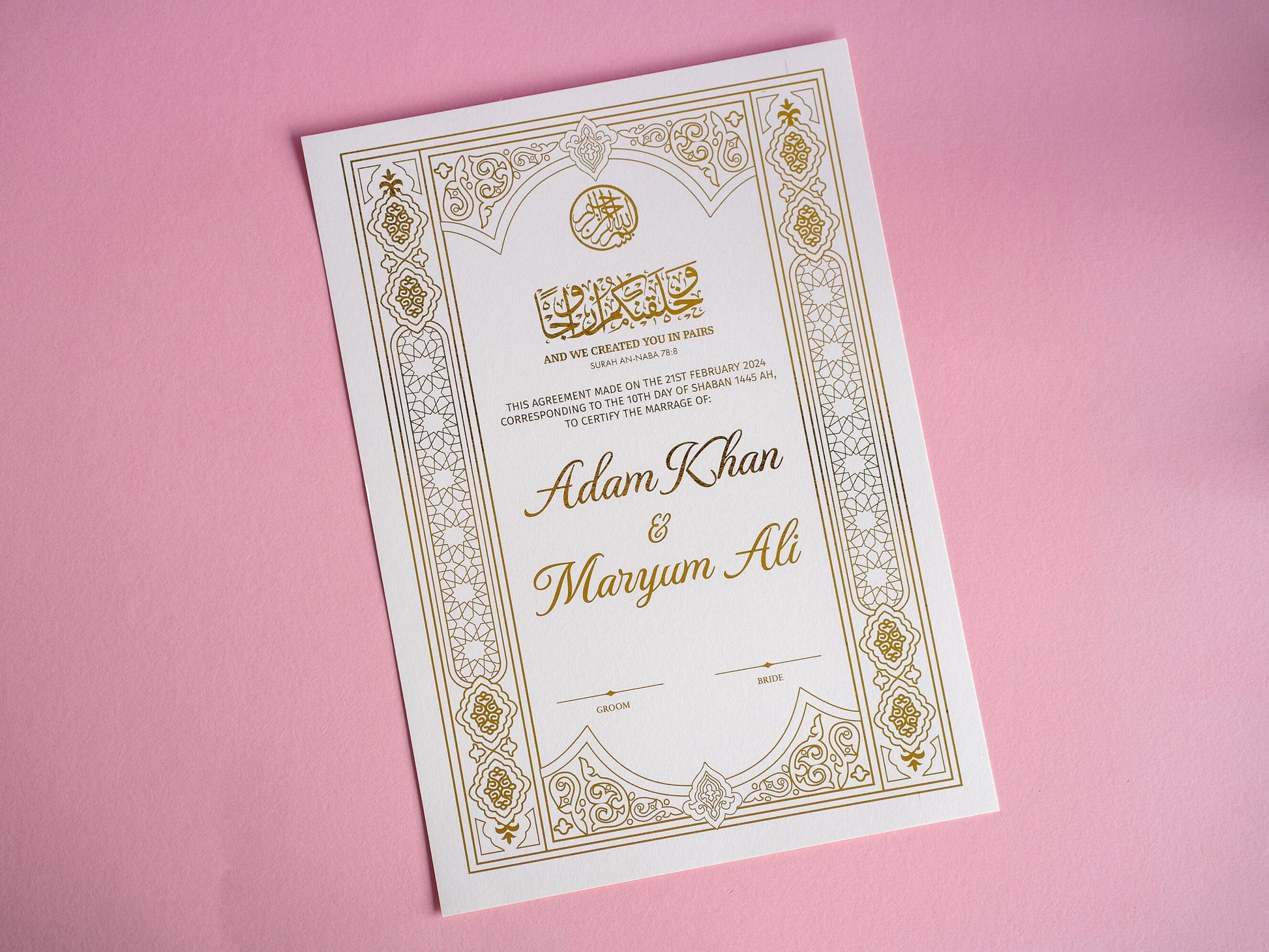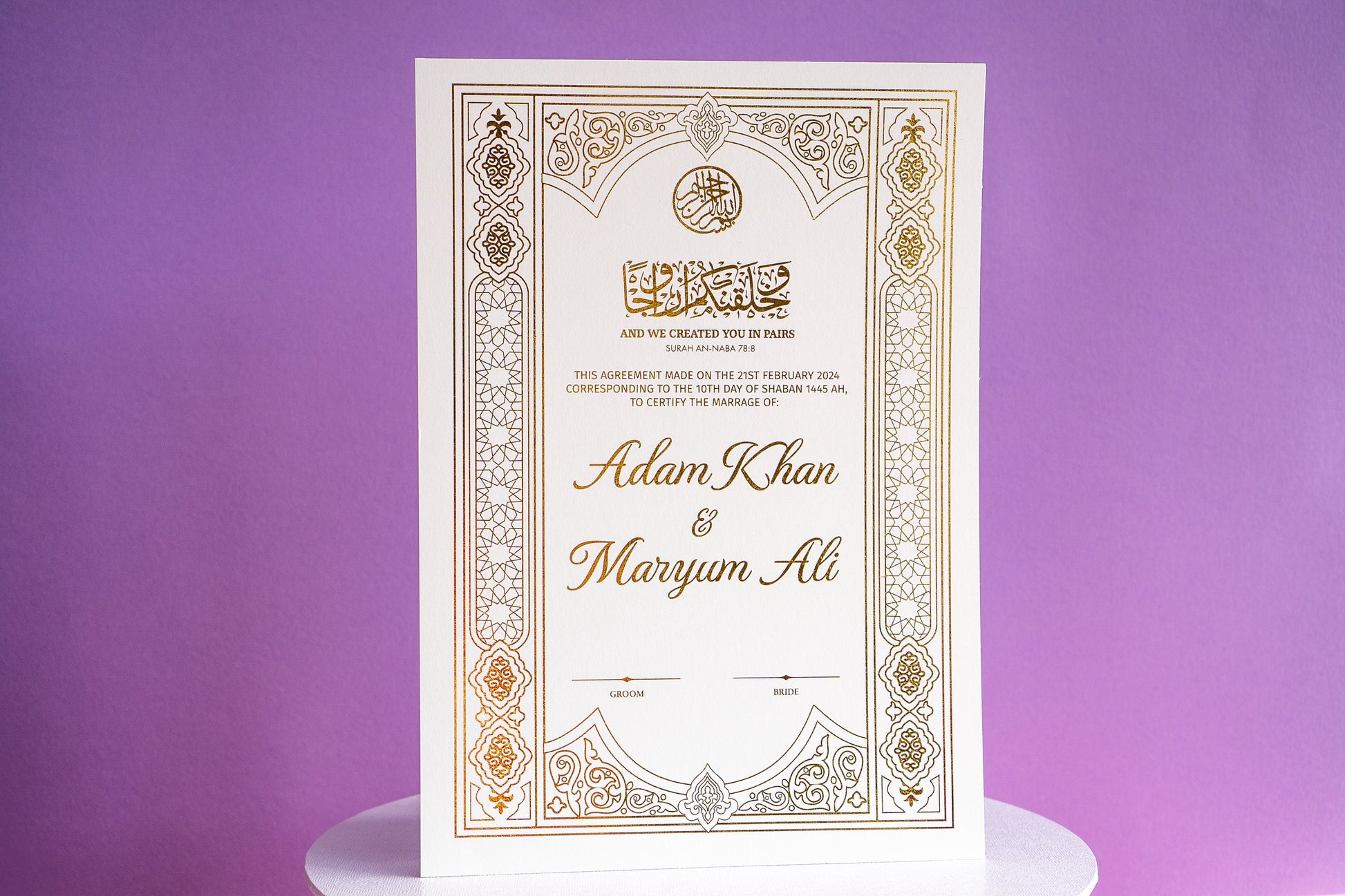 Luxury Gold Foiled Nikkah Wedding Certificate