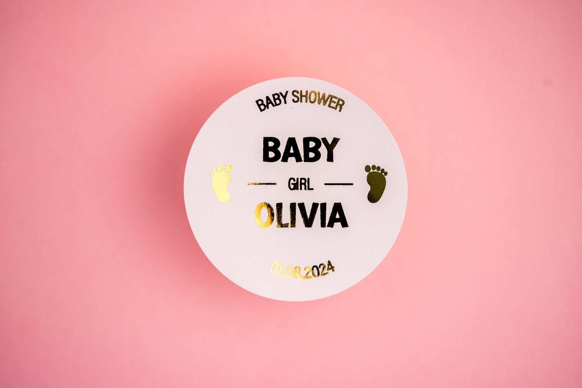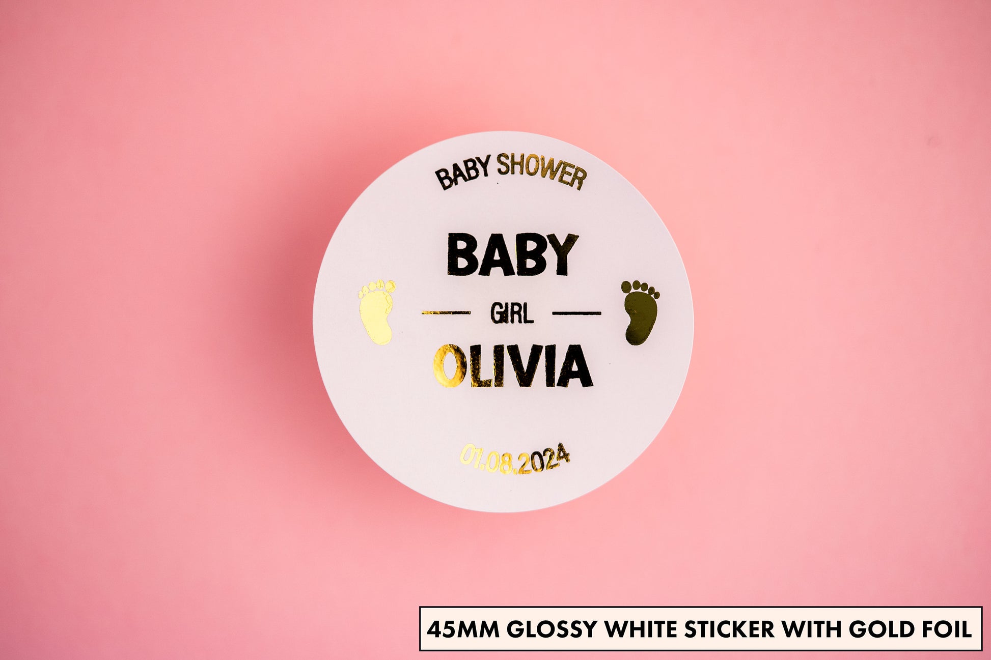 Make your baby shower an unforgettable event with these charming Personalised Baby Shower Metallic Foil Stickers! They are perfect for embellishing party favours, gift bags, or any other party essentials. These stickers can be personalised with the expecting mum's name, the baby's name, or any message of your choosing. These shiny and beautiful foiled stickers add a touch of elegance and whimsy to your baby shower celebration. Your guests will feel extra loved with these one-of-a-kind and customised party favours. Whether it's a boy, girl or neutral theme, these stickers will be a crowd-pleaser at your baby shower!