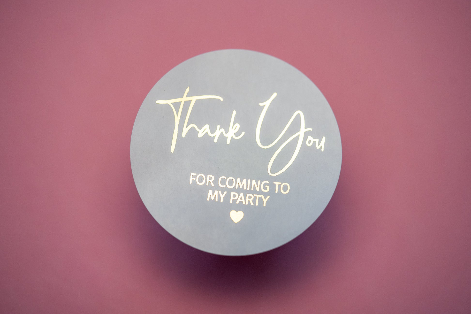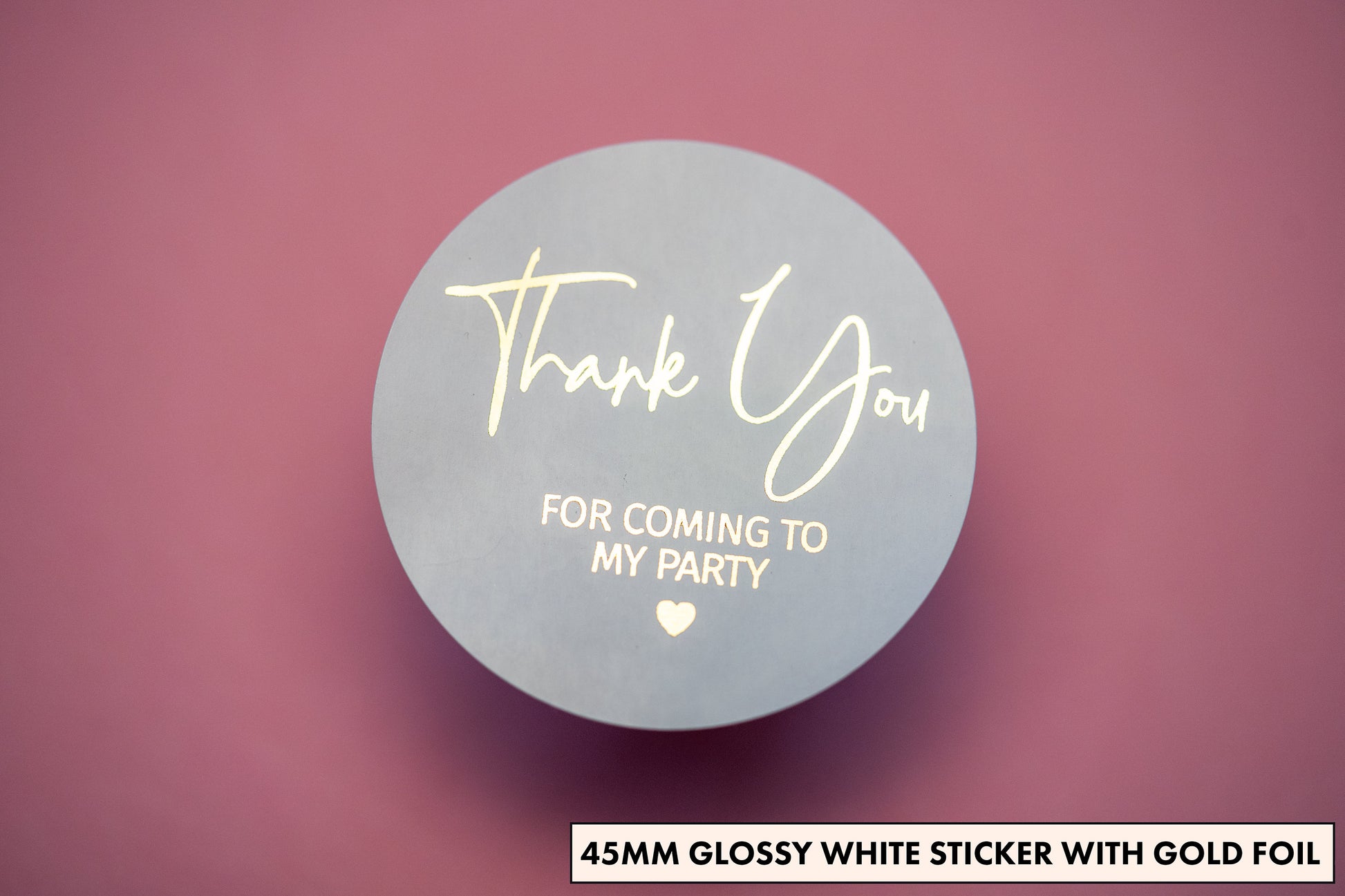Add a touch of personalization and charm to your upcoming party or event with these stunning Personalised Thank You Metallic Foiled Stickers! Perfect for decorating party favours, gift bags, invitations, or even sealing envelopes, these stickers will make your celebrations extra special. Each sticker is beautifully foiled to add a touch of elegance and sparkle. These stickers are a delightful way to make your birthday celebrations truly unique and unforgettable. Customise them with the birthday person's age for a personal touch that will impress your guests. Make your next birthday party unforgettable with these lovely foiled stickers!