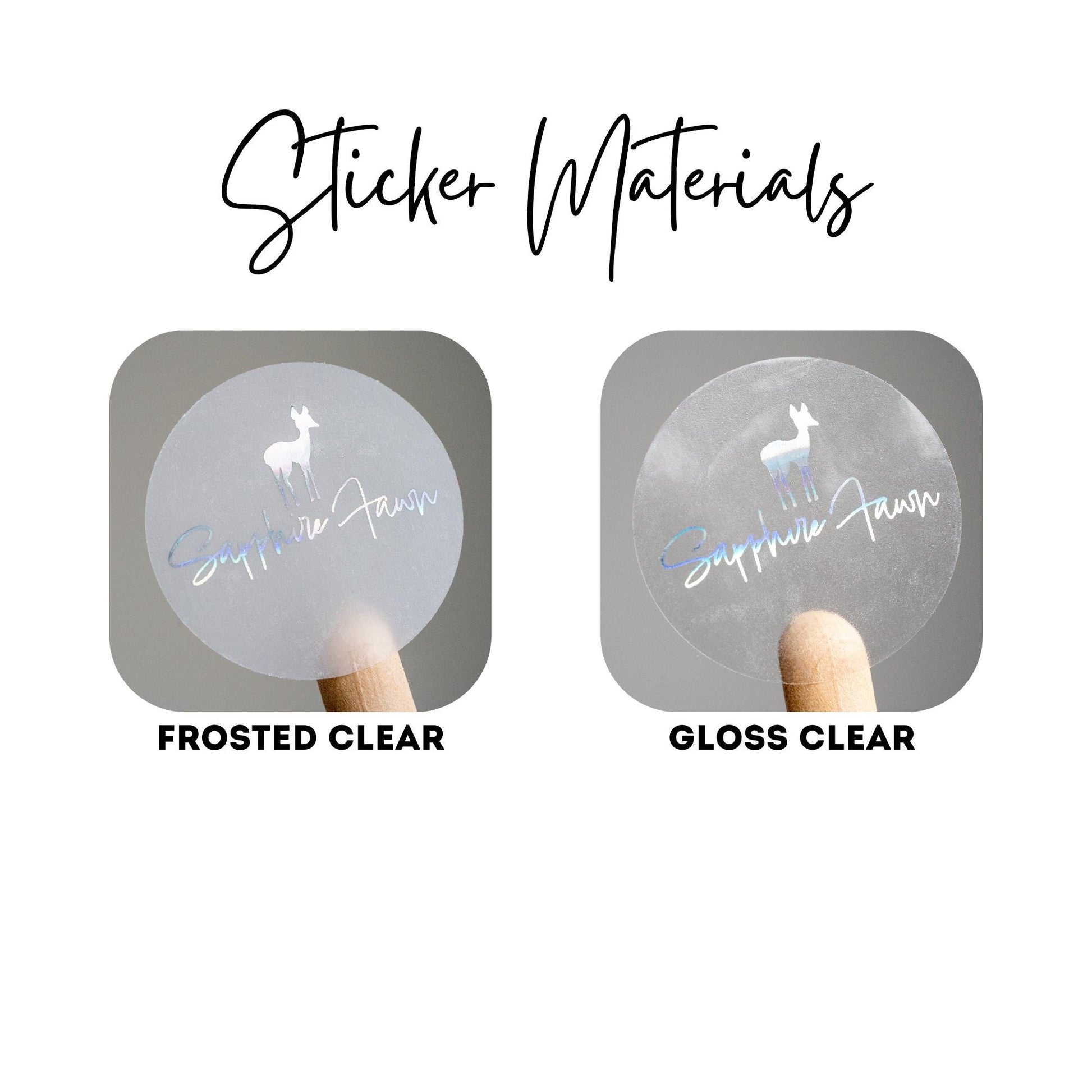 - Frosted Clear - Stylish frosted clear sticker with a soft, translucent finish.